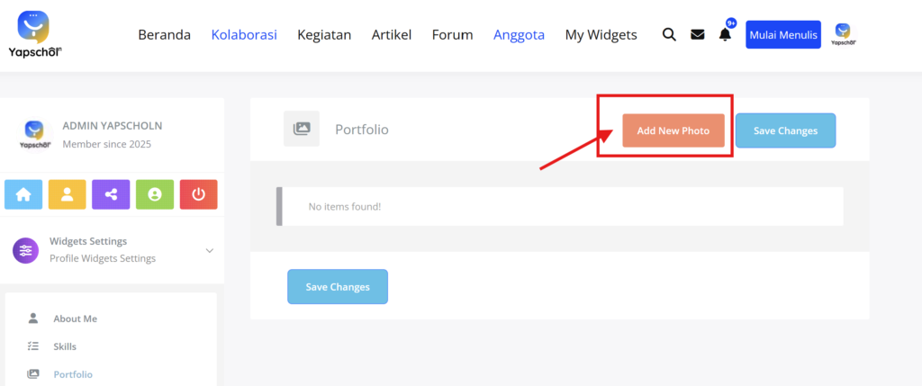 Cara Menambahkan Portfolio dengan Fitur Portfolio Widget di Yapscholn